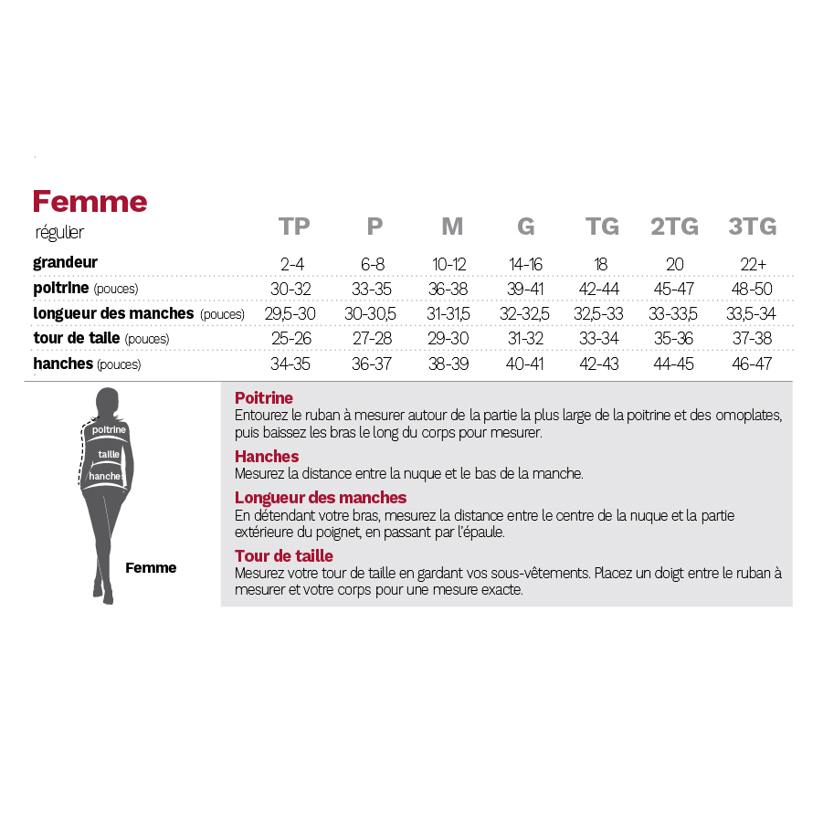 ISOLANT: 100 % faux duvet de polyester au niveau du corps, des manches et du capuchon, 106 g (3,7 oz) Taille pour femme M, 74 g (2,6 oz), 100 % bourre de polyester soyeux au niveau du bas des manches, de l’empiècement avant et arrière et du centre du capuchon, 80 g/m² (2,4 oz/v²).